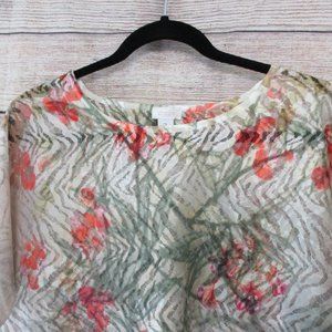 Chico's Semi Sheer Floral Print Lace Blouse Top