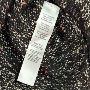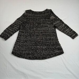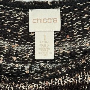 Chico’s Sequin 3/4 Sleeve Knit Sweater Womens 1P Black Gold Cold Shoulder