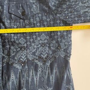 Tags chicos jacket denim jacket embellished jacket sequin jacket beaded jacket indigo blue jacket size 3 xl xlarge statement jacket sparkle jacket casual glam western chic boho style festival fashion eye catching piece elevated denim party ready unique details trendy outerwear comfy and stylish dressy casual versatile jacket bold fashion vintage inspired layering piece stylish sparkle embroidered denim