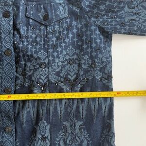Chico's Sequin Beaded Embellished Denim Jacket Indigo Blue Sz 3 XLarge Western