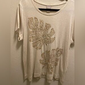 Chico's Sequin Embellished Tonal Palm Print Tee Size 3 (XL)