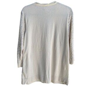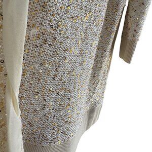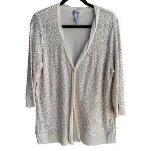 Chicos Sequin Embellished V Neck Glam Beige Gold Knit Cardigan Sweater Size 3