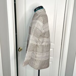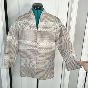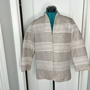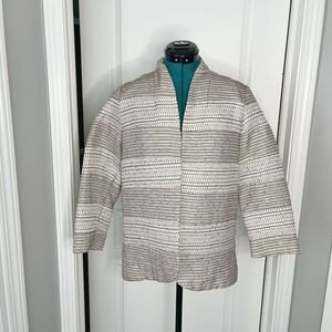 Chicos Sequin Metallic Open Front Textured Stripes Unlined 3/4 Sleeve Blazer