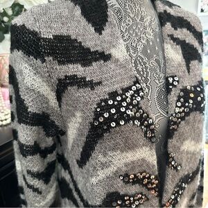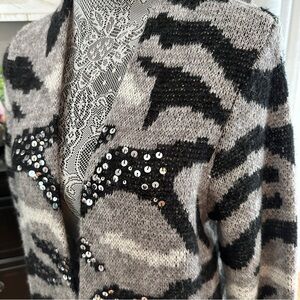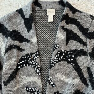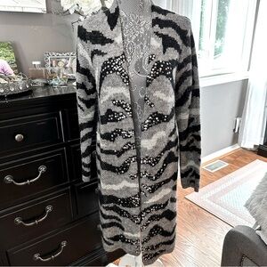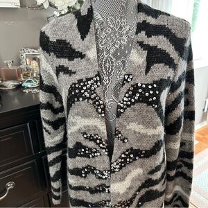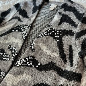 Chico’s Sequin Zebra Print Open Front Long Cardigan Sweater Size 1 (M/L)