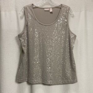 Chicos Sequined Tank top Sz 2 12-14 L Lt grey/silver sparkle layer holiday event