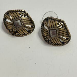 Picturing the faux amethyst set in gold toned post earrings - unsigned but nice quality earrings Condition: nice pre-owned condition, gently worn, May Need a light cleaning before wear. ** Quick shipping from a clean smoke-free home Inventory: bag 1 8328 Jewelry -- gold toned post earrings for women women's woman with purple faux amethyst stones jewels