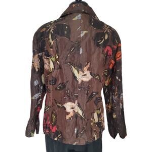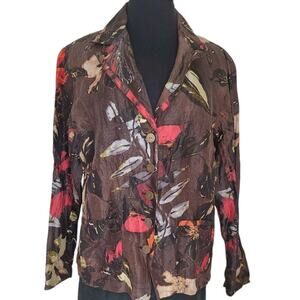 Chico’s Shacket Womens Sz 2 L Button Up Fall Frolic Fuego Hot Fudge Brown