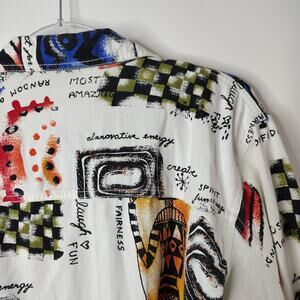 Chico’s Shaman Speaks Jacket Womens 3 / X-Large.  100% cotton with rayon decorations.  Made in India.  Abstract Artsy Positive Graphic.  Rare and very unique piece.