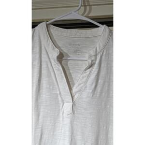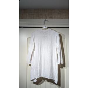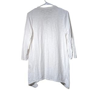 Chico's Sharkbite Hem White V-Neck 'The Ultimate Tee' Chico's Sz 1 (US M). Pre-owned, this shirt is in excellent condition with little to no wear. No stains, holes, or tears.