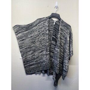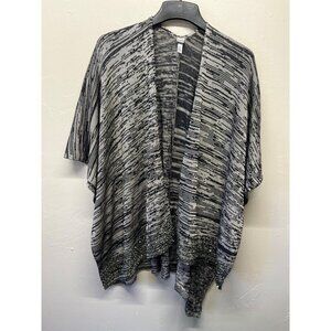 Chicos Shawl Open Front Poncho Wrap Beaded One Size Black Gray