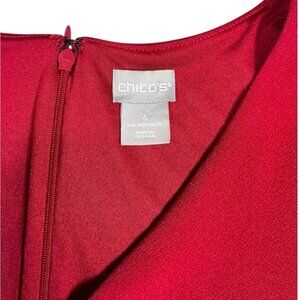 Chico’s Sheath Dress V-neck dress flowing bell 3/4 sleeve Festive Holiday Red Special Occasion Dressy Plus Chico 4 Women XXL Plus 20/22