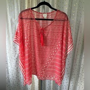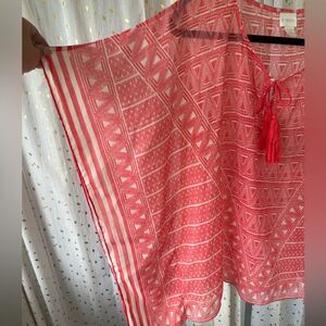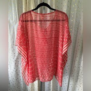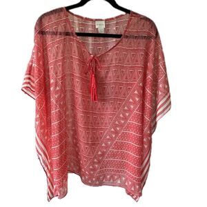 Chico's Sheer Geometric Tassel Summer Cover Up Stripe Batwing Poncho S/M