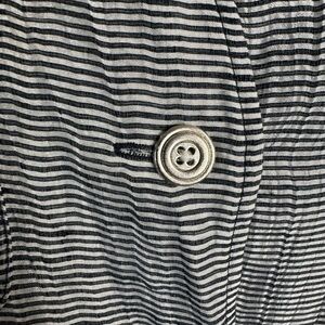 Chico's Sheer Gray Striped Button Up Peplum Lightweight Jacket size Large