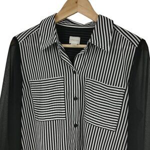 Chicos Sheer Striped Button Up Blouse Shirt Size 1 M Dark Acadamia Pleated Loose