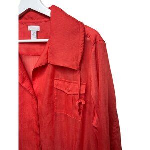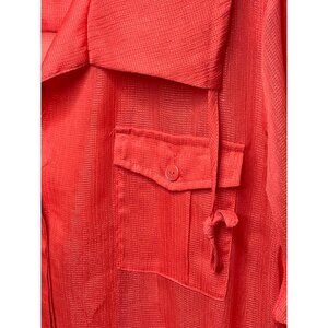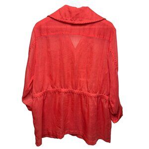 Chicos Sheer Utility Jacket Large Orange Lightweight Button Up