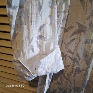 Chicos Sheer White Button-Down Blouse With Bamboo Print & 3/4 Sleeves Size 1 Ray