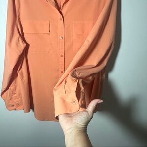 Chicos Sherbet Orange Button-Up Long Sleeve Modal Blend Shirt Size 3 (16-18)
