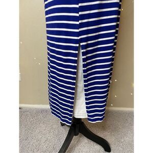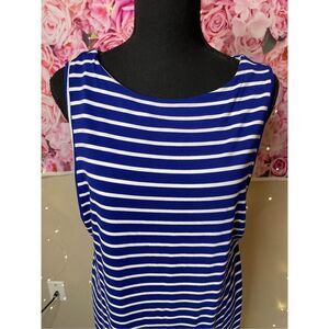 Chico's Shift Crew Neck Blue & White Colorblock Striped Sleeveless Shift Midi Dr