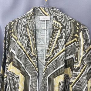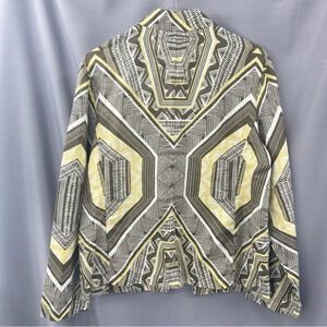 Chico’s Shimmer Heidi Geometric Print Linen Blend Lightweight Open Front Cardigan Jacket Size 1 / Medium/ US 8