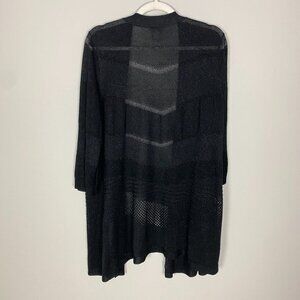Chicos Shimmer Open Knit Cardigan Sweater Kimono Black Womens Large or Vanity 2