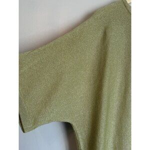 Chico’s Shimmer Side-Ribbed Sweater Size XL Chartreuse Short Sleeve Holiday Glam