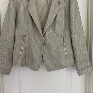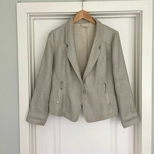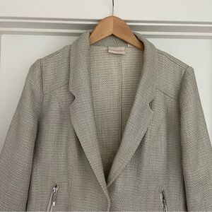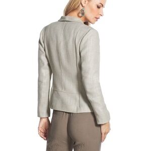 Woven with an island-inspired texture, this structured, neutral-toned jacket has a subtle luster. Curve-loving princess seams ensure a feminine silhouette.