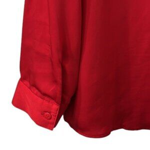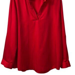 Chico's Shiny Red Split Neck Long Roll-Tab Sleeeve Popover Blouse NWOT