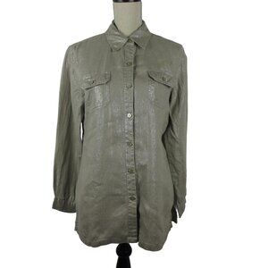 Chicos Shirt 100% Linen Button Down Size M Quiet Luxury Coastal Classic
