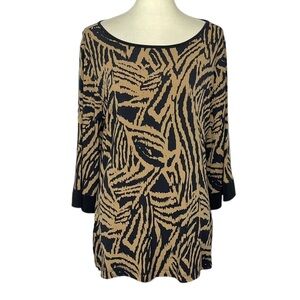 Chico’s Shirt 2 Womens 12 Large Brown Black Animal Print Geometric Print Blouse