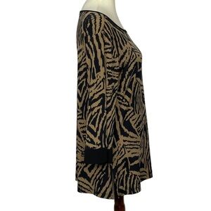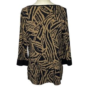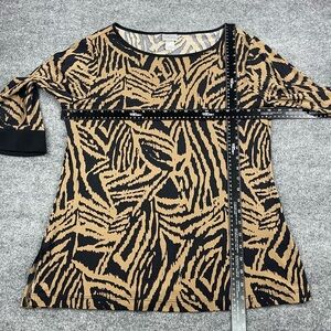 Chico’s Shirt 2 Womens 12 Large Brown Black Animal Print Geometric Print Blouse. 3/4 Length Sleeves. See size chart in photos. Very Good Pre-owned condition. No found flaws or stains. See photos for measurements. Ships quickly from smoke-free home.