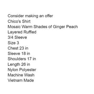 Chico's Shirt Size 3 Nylon Polyester Machine Wash Vietnam Made Mosaic Warm Shades of Ginger Peach