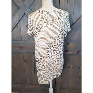Chico's Shirt Blouse Women's 1 Small Medium Asymmetrical Cream Tan Leopard Print