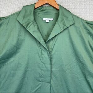 Chicos Shirt Dress w/ Pockets 3XL Women's Maxi Stretch Cotton Olive Green EUC