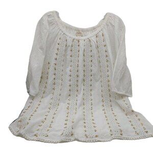 Chicos Shirt Front White Gold Sequins Size 2 Blouse Large
