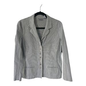 Chicos Shirt Jacket Women M/L Striped Black White Button Up Long Sleeve