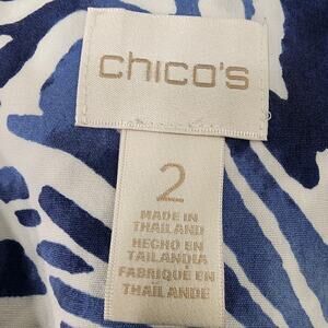 Chico's Shirt No Iron Women's Large Blue White Animal Print Short Sleeve Button