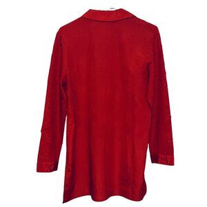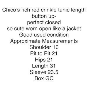 Chico's Shirt Rich Red Crinkle Long Sleeve Collared Button Up Tunic Top Medium