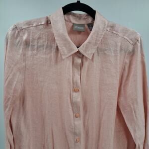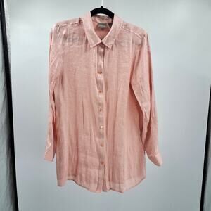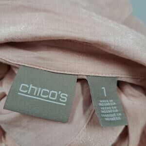 Chico's Shirt Top 1 M Shimmery Metallic Long Sleeve Button Down Casual Pink