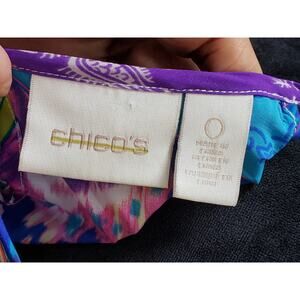 Chico's Shirt Top Women 0 Multicolor Cold Shoulder Sleeve Keyhole Back Tie Hem
