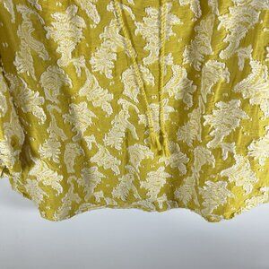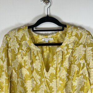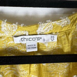 Chicos Shirt Top Womens 14 Yellow Floral Textured Blouse Tassel Boho Boxy