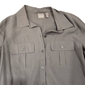 Chico's Shirt Top Women's Grey Size 1 / Medium Long Sleeve Button Down Double Po