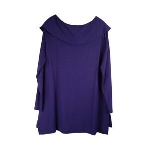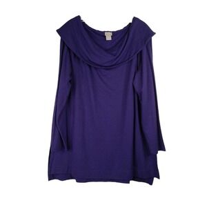 Chicos Shirt Tunic Womens Size 12/14 Solid Purple Off The Shoulder LS Top
