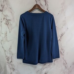 Chicos Shirt Women 1 Medium Blue V Neck Button Textured Ribbed Henley Pockets