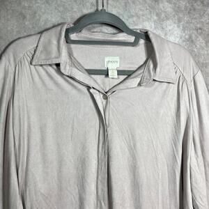 Chico's Shirt Women Size 2 US Large Pink Microsuede Long Sleeve Button Casual