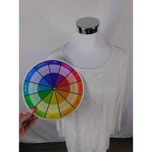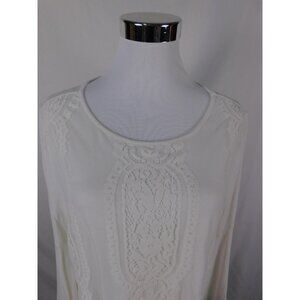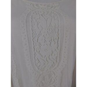 Chico's Shirt Womens 1 Medium White Lace Front Boho Tunic 3/4 Bell Sleeve Knit