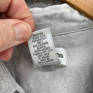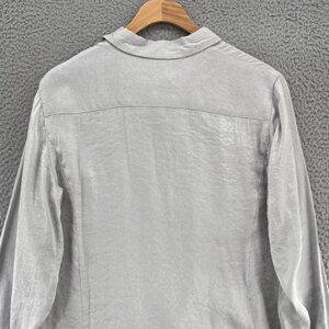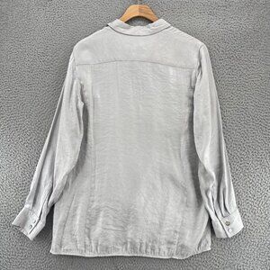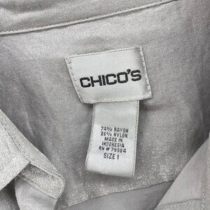 Chicos Shirt Womens 1 US Medium Silver Shimmer Button Up Collared Long Sleeves