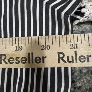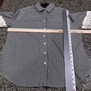 Chicos Shirt Womens 10 Gray White Stripe Button Front Lace Long Sleeve Blouse