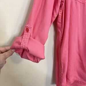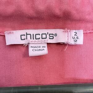 Chico's Shirt Women's 12 Pink Frayed Trim Roll-Tab Long Sleeve Button Up Blouse