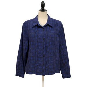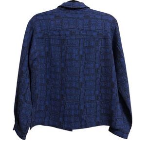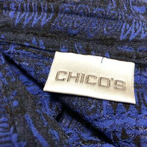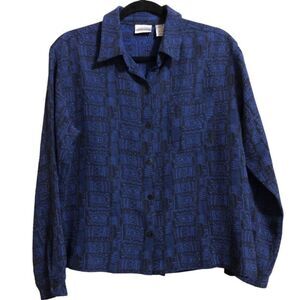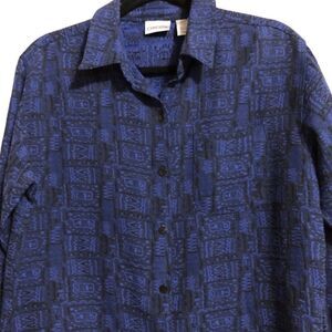 Chico's Shirt Womens 2 Blue Black Long Sleeve Button Up Geometric Pattern Basic