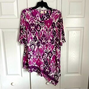 Chicos Shirt Womens 3 Purple Ikat Asymmetrical Hem Short Sleeve Tunic Top Boho